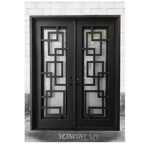 Puertas de puerta Arcos franceses Hierro Apertura manual Casa Puertas de fibra de vidrio de acero Hierro forjado duradero y popular con vidrio Moderno